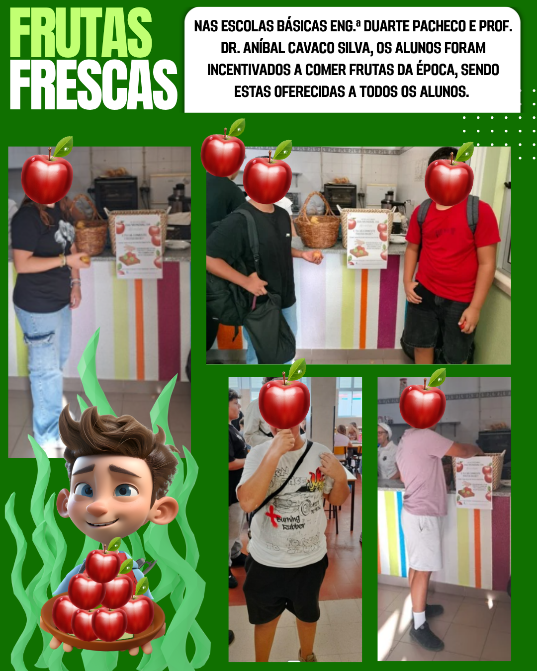 Nas Escolas Básicas Eng.ª Duarte Pacheco e Prof. Dr. Aníbal Cavaco Silva, os alunos foram incentivados a comer frutas da época, sendo estas oferecidas a todos os alunos. A iniciativa teve como objetivo promover hábitos alimentares saudáveis e valorizar o consumo de alimentos frescos e naturais. Os alunos deliciaram-se a saborear a fruta fresca, participando com satisfação nesta atividade. Os alunos que almoçaram nas cantinas escolares receberam autocolantes alusivos ao Dia da Alimentação, tornando o momento ainda mais divertido e educativo.