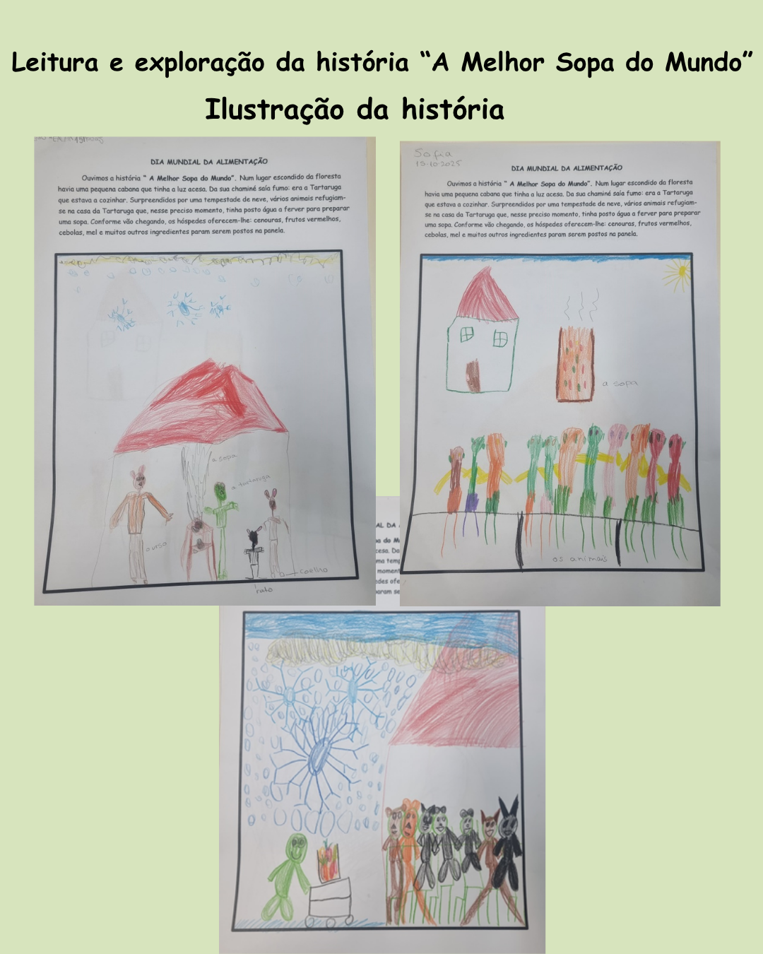 No âmbito do Dia da Alimentação, foi sugerida a leitura da obra “ A melhor Sopa do Mundo” aos alunos do Pré-escolar e 1.ºCiclo. A leitura foi acompanhada de atividades criativas, tal como a realização de desenhos inspirados na história, utilizando tintas naturais obtidas a partir de pigmentos de frutas e legumes. Como seria de esperar, a imaginação e a criatividade estiveram de mãos dadas, os alunos arregaçaram as mangas e produziram trabalhos cheios de cor, originalidade e boa disposição.