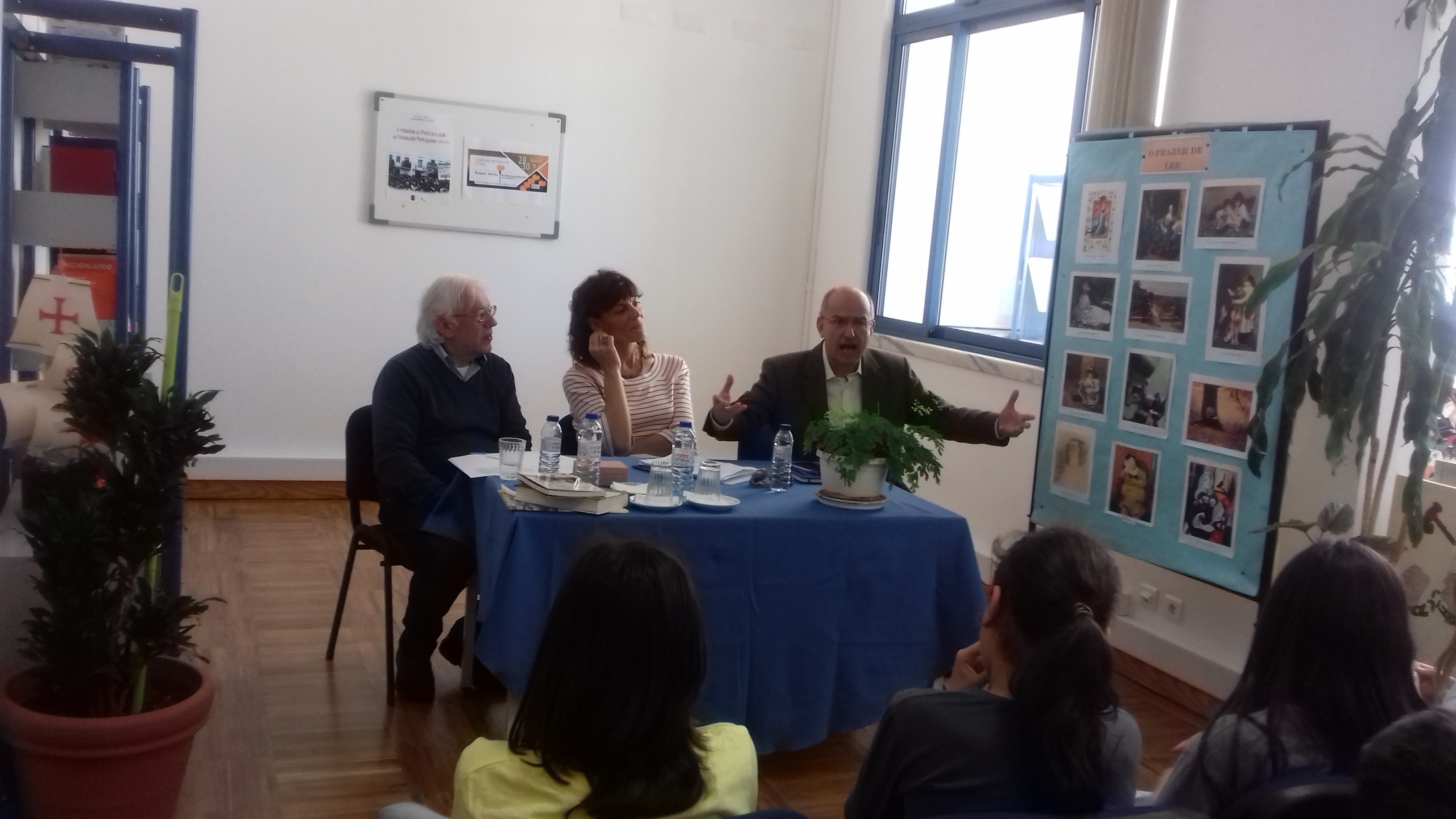 A historiadora / Professora Raquel Varela e o presidente da CML, Dr. Vítor Aleixo, informaram, esclareceram e encantaram o público presente com apontamentos sobre a Revolução de 25 de abril de 1974 e, em particular, como foram vividos esses momentos em Loulé. António Clareza, reconhecido louletano, enriqueceu a sessão e o debate com testemunhos relatados na primeira pessoa. Senti-mo-nos imensamente honrados pela presença de tão ilustres oradores e pelos momentos de partilha e proximidade que proporcionaram aos nossos alunos.